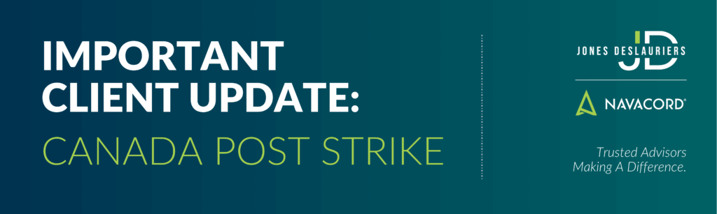 TO OUR VALUED CLIENTS: During the Canada Post strike, Jones DesLauriers is committed to ensuring you receive uninterrupted support and service. Here’s how we’re keeping you informed and supported every step of the way.