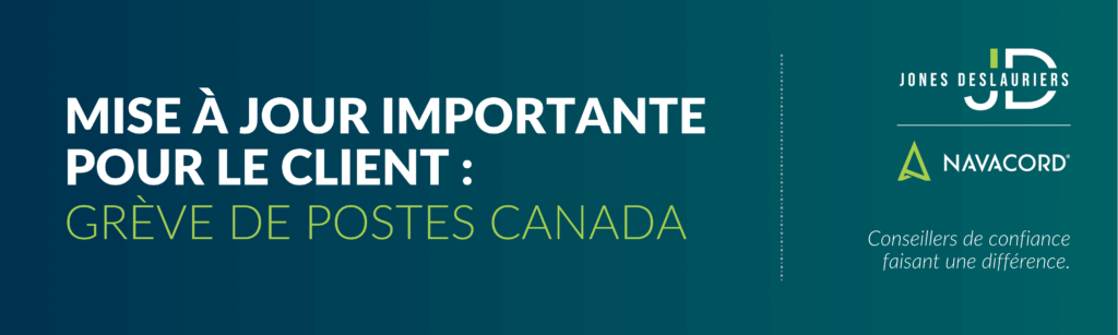À NOS CLIENTS PRÉCIEUX : Pendant la grève de Postes Canada, Jones DesLauriers s’engage à vous offrir un soutien et un service ininterrompus. Voici comment nous vous tenons informés et soutenus à chaque étape du processus.