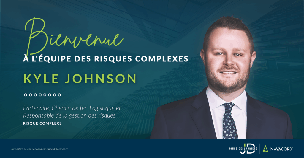 Toronto, ON, 17 Novembre 2025 – Jones DesLauriers Insurance Management Inc., un partenaire courtier fondateur de Navacord, est heureux d’annoncer la nomination de Kyle Johnson en tant que partenaire et leader en gestion des risques liés aux chemins de fer, à la logistique et aux transports au sein de la division des risques complexes de l’entreprise. Cette nomination reflète l’engagement continu de l’entreprise à développer des capacités spécialisées pour les clients confrontés à des expositions opérationnelles et de chaîne d’approvisionnement complexes.